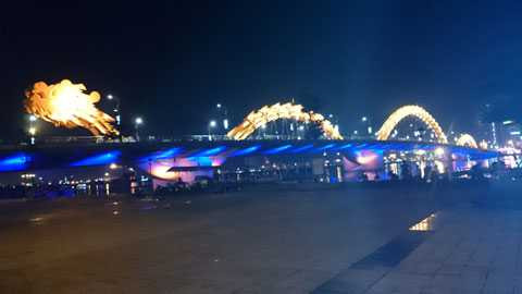 | Cầu Rồng ở TP Đà Nẵng chỉ đẹp về ban đêm. Ảnh: Tĩnh Nguyễn Thế |