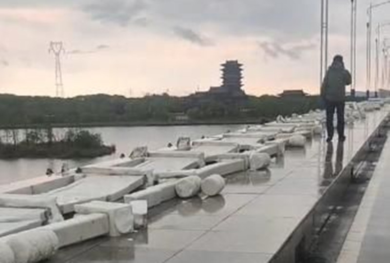 Phần lớn lan can đá trắng ở một bên cầu Tài Tử đã bị sập.