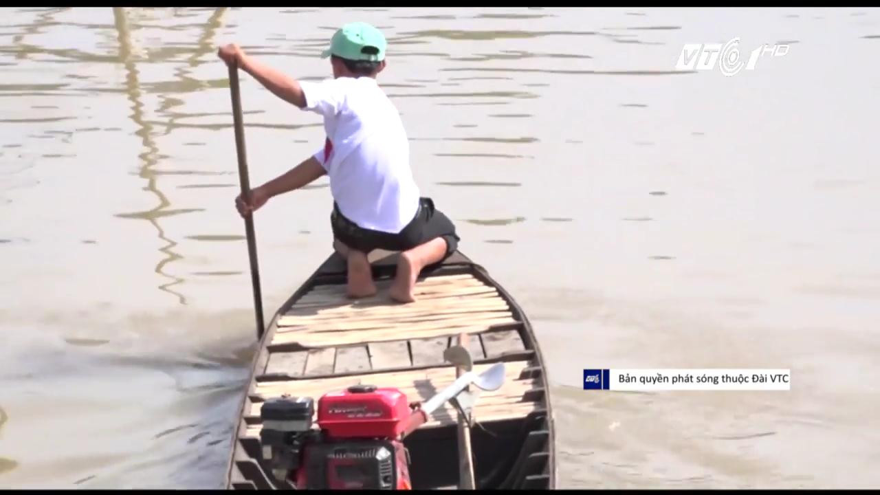 Em Bùi Văn Ty (học sinh trường THCS Thường Thới Hậu A, Hồng Ngự, Đồng Tháp) hàng ngày phải lặn lội, tự chèo xuồng gần 5km vượt sông để tới trường.