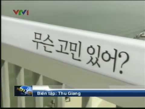 (VTC News) - Cây cầu bắc qua sông Hàn ở thủ đô Seoul, Hàn Quốc thường được nhớ đến là nơi hay xảy ra các vụ tự sát với trung bình hơn 20 ca tự tử mỗi năm tại đây. 8 năm nay, Hàn Quốc đứng đầu các quốc gia phát triển về tỉ lệ người tự tử. Để thay đổi tình trạng này, chính phủ Hàn Quốc vừa phát động một chiến dịch giảm thiểu nạn tự tử mà nơi đầu tiên được triển khai chính là cây cầu này.