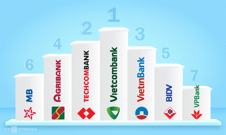 Thứ tự xếp hạng 7 ngân hàng đạt lợi nhuận trên 10.000 tỷ đồng. (Đồ họa: Tạ Lư)