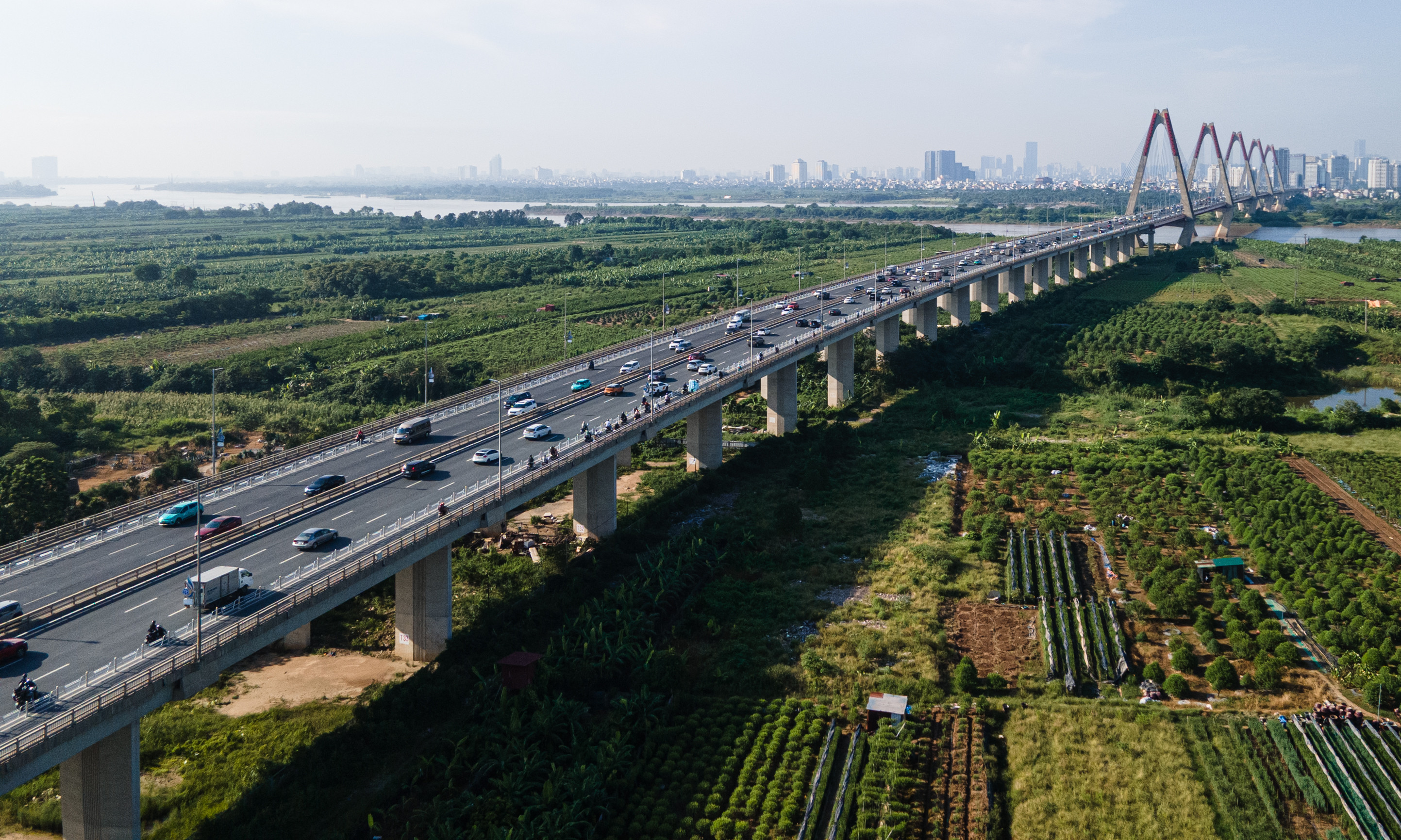Hiện, hướng từ Võ Chí Công sang Đông Anh cơ bản hoàn tất việc lắp rào phân làn. Ở chiều ngược lại, từ Đông Anh vào trung tâm thành phố lắp được khoảng 2/3 chiều dài cầu.