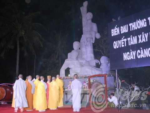 Các chư tăng cầu siêu cho các nạn nhândưới chân tượng đài chứng tích Sơn Mỹ