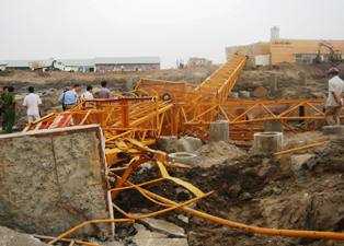 | Hiện trường vụ lật cẩu tháp (Ảnh Q.M) |