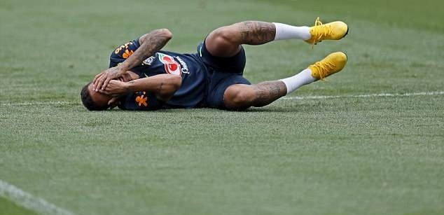 Ngôi sao mang áo số 10 cũng khiến các đồng đội được trận cười no khi tái hiện lại màn ăn vạ từng thể hiện ở trận gặp Mexico. Anh nằm vật xuống sân và ôm mặt lăn lộn và lại đứng dậy như không có gì xảy ra.