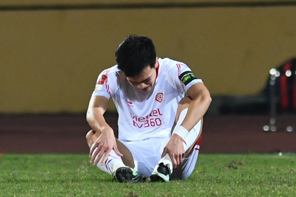 Hoàng Đức gặp chấn thương sau pha vào bóng của Văn Toản.