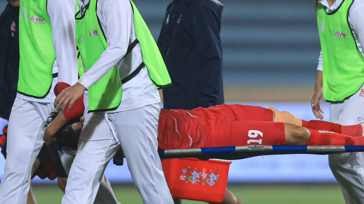 Mạnh Dũng rời sân ở phút 12.