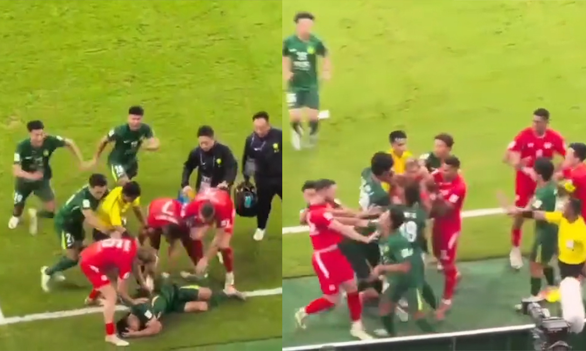 Sự căng thẳng bắt nguồn từ pha va chạm giữa tiền đạo của đội bóng Việt Nam Rogerio Alves (tên khác là China) với cầu thủ Beijing Guoan là He Yupeng (Hà Vũ Bằng), khiến anh này nằm sân ôm mặt. Trong lúc trọng tài nhắc nhở cầu thủ 2 đội, He Yupeng lăn vào sân.