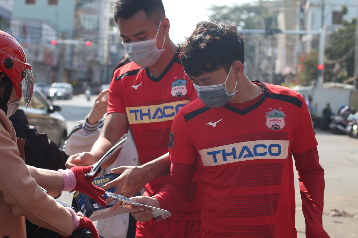 Chia sẻ với VTC News, Giám đốc điều hành CLB HAGL Nguyễn Tấn Anh cho biết, chiều 3/2, toàn bộ cầu thủ đội 1 của HAGL đã thực hiện chiến dịch tuyên truyền và tặng khẩu trang miễn phí cho người dân trước tình hình diễn biến phức tạp của đại dịch corona.