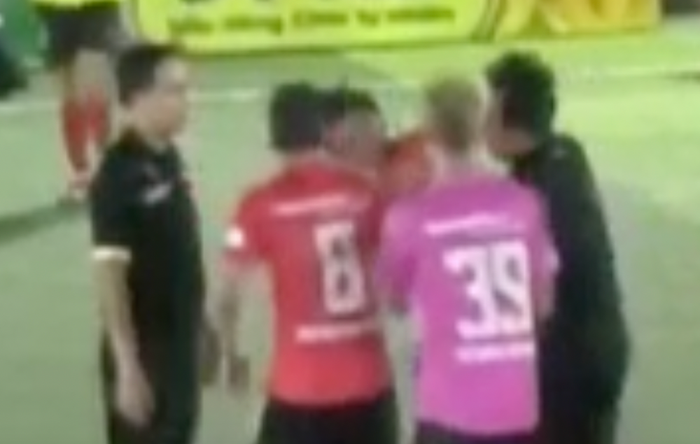 Trọng tài Lê Thế Kiệt bị đấm gục ngay trên sân.