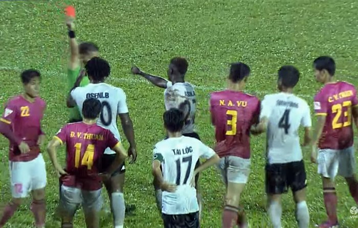 Oseni nhận thẻ đỏ trực tiếp của trọng tài chính Trần Đình Thịnh.