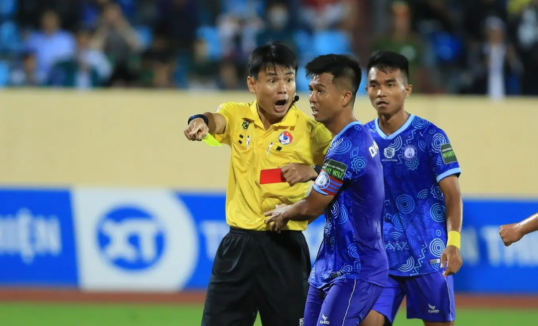 Trọng tài cho Nam Định hưởng quả 11m gây tranh cãi.
