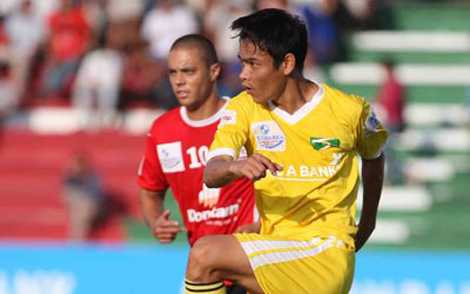 | Huy Hoàng thi đấu trên sân Long An (Ảnh: Đức Đồng) |