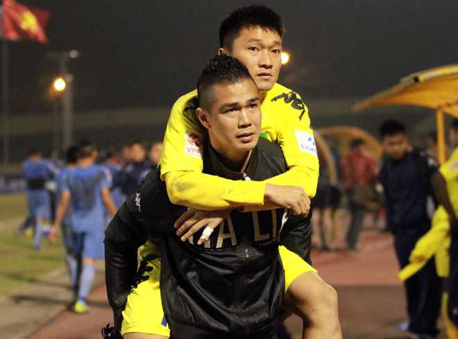 Đình Đồng được đưa tới bệnh viện 115 sơ cứu, chụp chiếu. Các bác sĩ cho biết hậu vệ SLNA bị lật cổ chân, sẽ phải nghỉ ít nhất là nửa tháng.