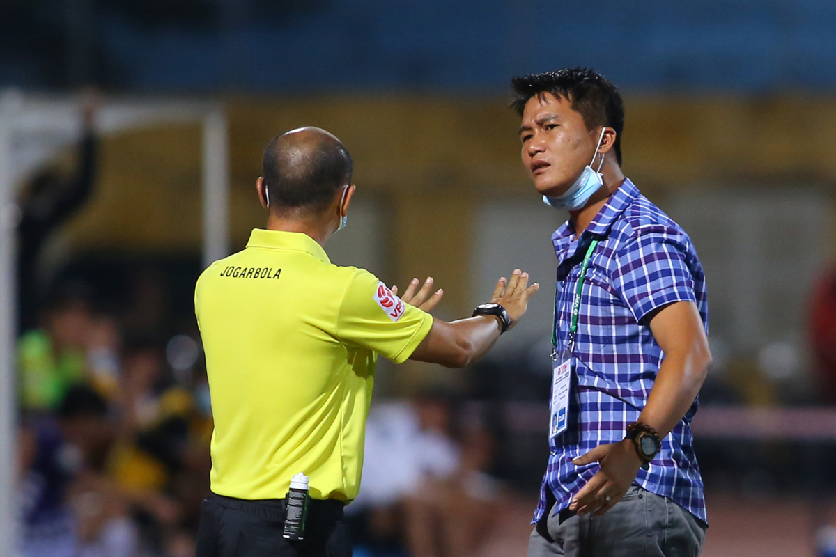 HLV Mai Xuân Hợp và ban huấn luyện Thanh Hóa ra sát đường biên phản ứng nhưng cũng ra hiệu cho các học trò tôn trọng quyết định của trọng tài, tiếp tục thi đấu.