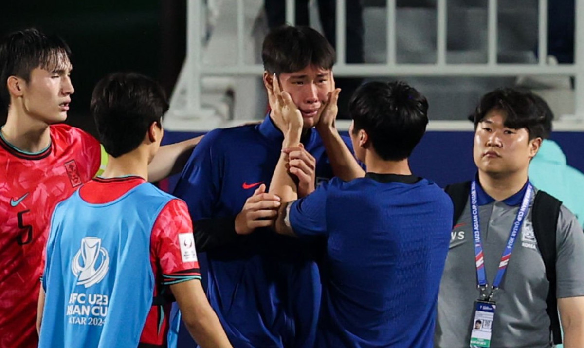 Cầu thủ U23 Hàn Quốc bật khóc.