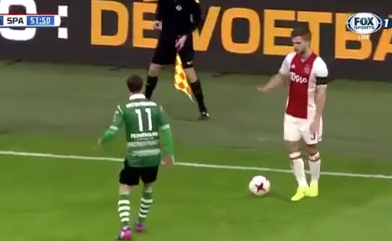 Trái với tinh thần thể thao, cầu thủ Ajax Joel Veltman đã dùng đồng đội đang bị thương nằm sân để đánh lừa đối thủ.