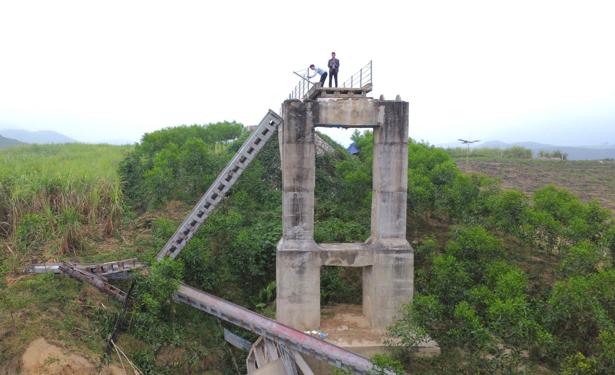 Cột sắt ở 2 mố cầu treo Kẻ Nính bị đổ gãy