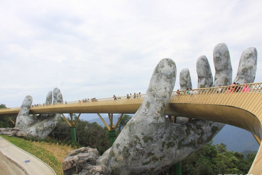 “Hai bàn tay bằng đá khổng lồ vươn ra từ dãy núi ở miền trung Việt Nam trông có vẻ già nua và giống như một tàn tích từ thời cổ đại. Nhưng đừng bị đánh lừa. Đó là mạng lưới dây kim loại và sợi thủy tinh được dùng để hỗ trợ cho một cây cầu đi bộ đáng kinh ngạc vừa mới được khánh thành vào tháng 6.