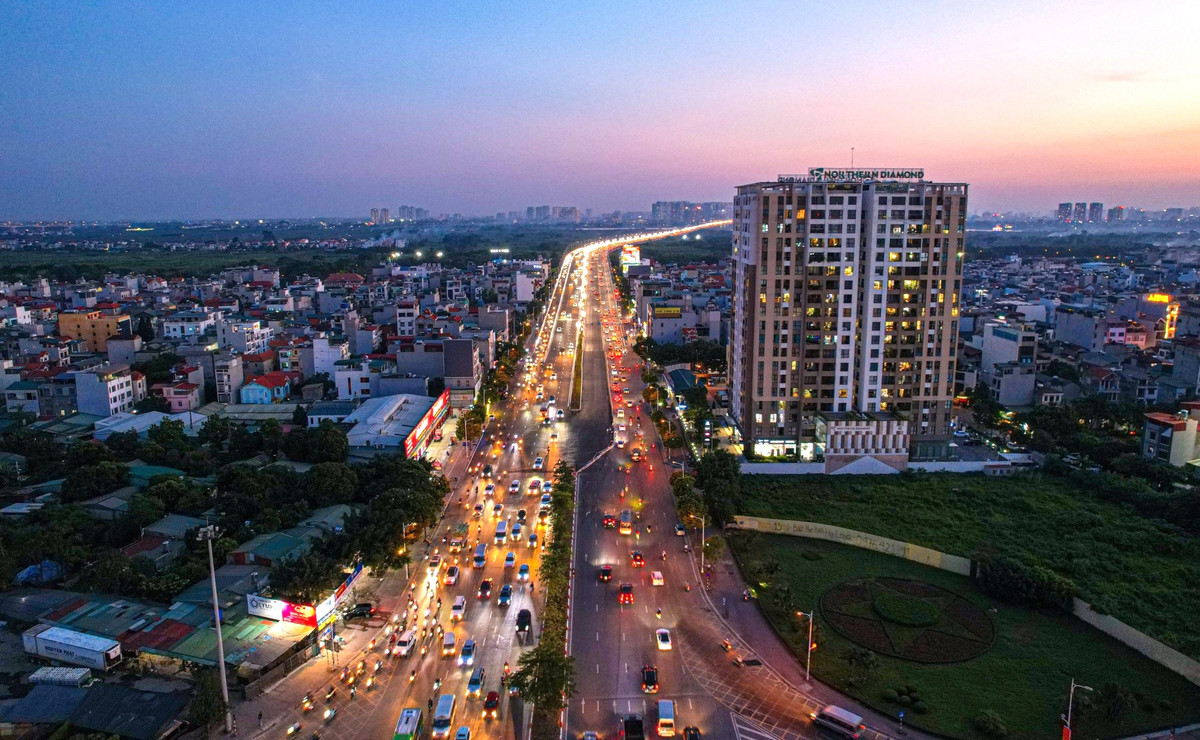 Dòng phương tiện băng băng qua cầu Vĩnh Tuy 2 vừa được khánh thành sau gần 3 năm thi công.