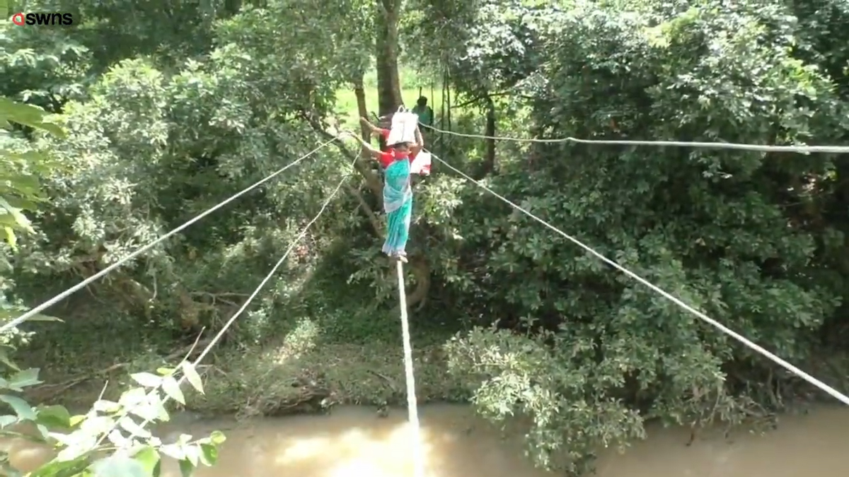 Cây cầu bằng dây cáp điện dài hơn 6km được người dân tại làng Odisa, Ấn Độ tạo ra để có thể vượt qua sông.