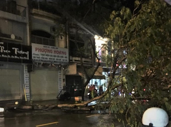 "Cây bật gốc lúc trời mưa to, thời điểm ít người qua lại. Các nhánh cây đè vào hệ thống dây điện làm khu phố mất điện trong nhiều giờ sau đó", một nhân chứng kể.