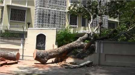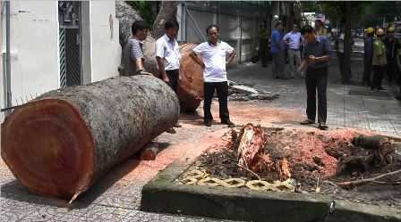 | Cây cổ thụ đè sập 1 khoảng tường tổng Lãnh sự quán Nga. |