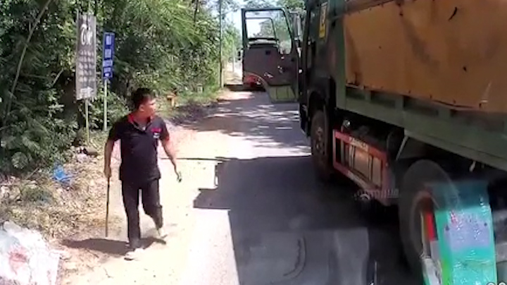Bức xúc không được vượt, tài xế xe ben chặn đầu, cầm gậy định hành hung tài xế xe tải tại quốc lộ 47, huyện Nông Cống, tỉnh Thanh Hóa.