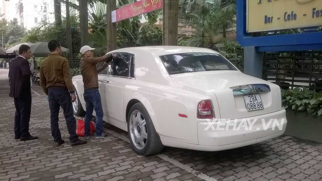 Chiếc xe sang Anh Quốc - Rolls-Royce Phantom màu trắng muốt với biển số siêu "khủng" tứ quý 8 vừa mới lọt vào ống kinh máy ảnh bởi tình huống bi hài: lái xe và chủ nhân bước ra ngoài quên không rút chìa, khiến xe tự động khoá lại không thể mở được.