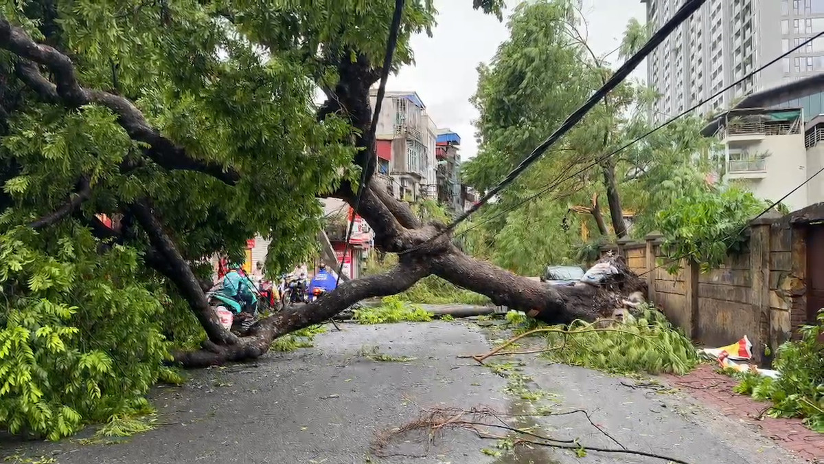 Cây đổ la liệt khắp đường phố Hà Nội sau bão Yagi