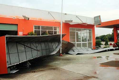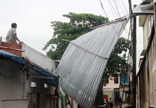Trên quốc lộ 13 (Thủ Đức), nhiều biển quảng cáo ngã đổ. Mái tôn ba căn nhà đối diện cư xá Thanh Đa, quận Bình Thạnh cũng bị mưa dông lốc thổi bay 50 m.