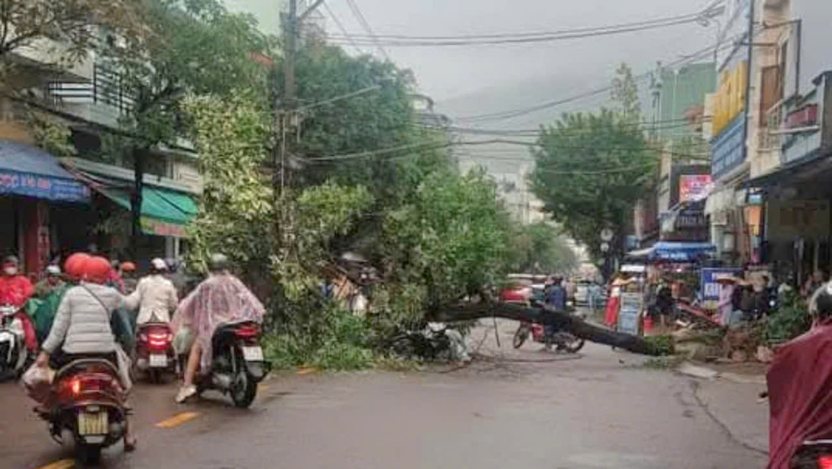 Khoảng 10h20 ngày 27/12, một cây hoa sữa lớn trên đường Nguyễn Thái Học, phường Quang Trung, TP Quy Nhơn (Bình Định) đổ xuống đường và đè trúng một người đàn ông đang đi xe máy.