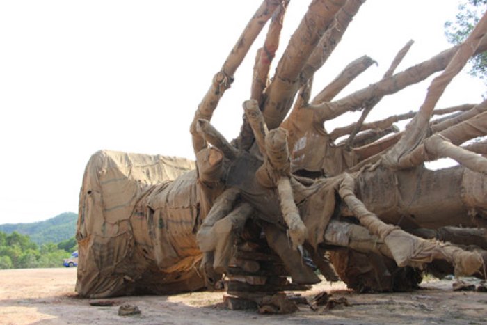 Theo đó, chiều 1/4, Thượng tá Lê Viết Phương, Phó trưởng Phòng CSGT đường bộ - đường sắt (PC67) Công an tỉnh Thừa Thiên - Huế, cho biết 3 cây cổ thụ "khủng" vận chuyển qua địa bàn tỉnh này bị lực lượng CSGT phát hiện, xử phạt đã được hạ tải và bỏ lại tại một bãi đất trống của quán cơm trên tuyến đường tránh TP.Huế, thuộc Quốc lộ 1A (thuộc địa phận P.Phú Bài, TX. Hương Thủy, Thừa Thiên - Huế).