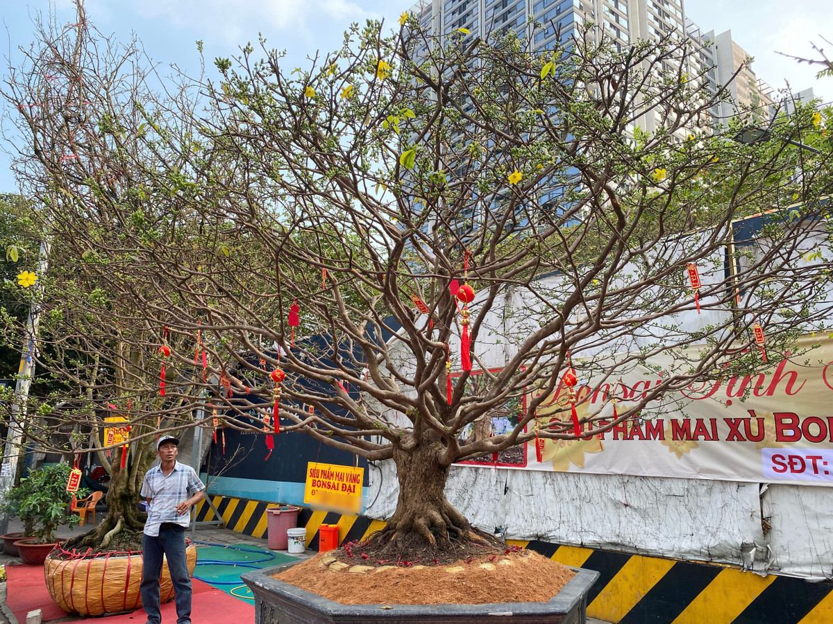 Anh Thành, chủ một vườn mai cho biết, anh đang bán cây mai giảo bonsai 12 cánh với giá 3,2 tỷ đồng. Đây là cây mai được trồng rất lâu năm, có xuất xứ từ huyện Chợ Lách, tỉnh Bến Tre. Cây mai cao 3m, tán rộng khoảng 5m.