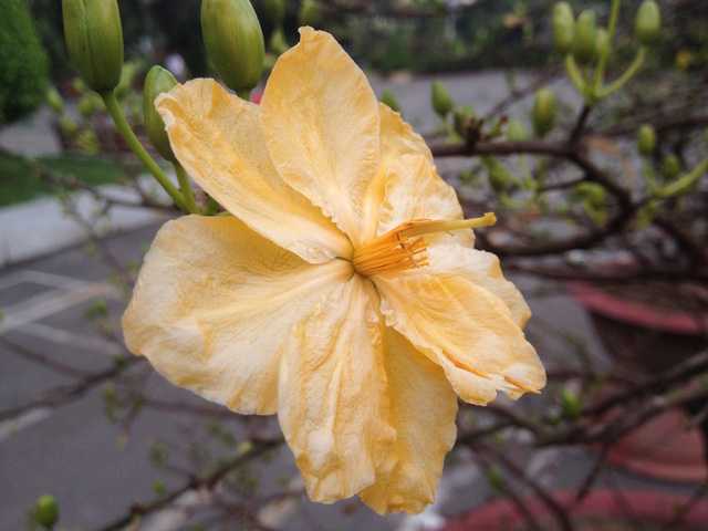 Đến chiều tối thì cánh hoa chuyển sang màu hơi trắng rồi rụng