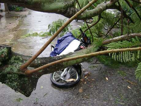 Chị Nga sống gần khu vực cây đổ cho biết: “chúng tôi đang ăn sáng bỗng nghe tiếng ào rất mạnh, khi chạy ra xem thì cây phượng đổ ngã chắn ngang đường, 2 người đàn ông bị cây đập vào mình dưới mưa”.