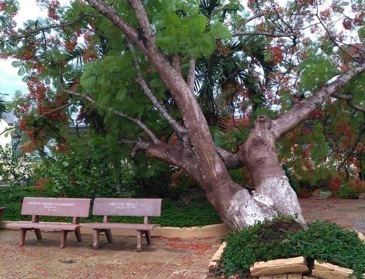 Theo ghi nhận, gốc cây phượng có đường kính gần 1 m và chia thành 2 nhánh lớn. Cây phượng cao khoảng hơn 12 m đang ra nở hoa đỏ rực. Sau khi xảy ra sự cố, lãnh đạo trường tiểu học đã cho cắt cành và thu dọn.