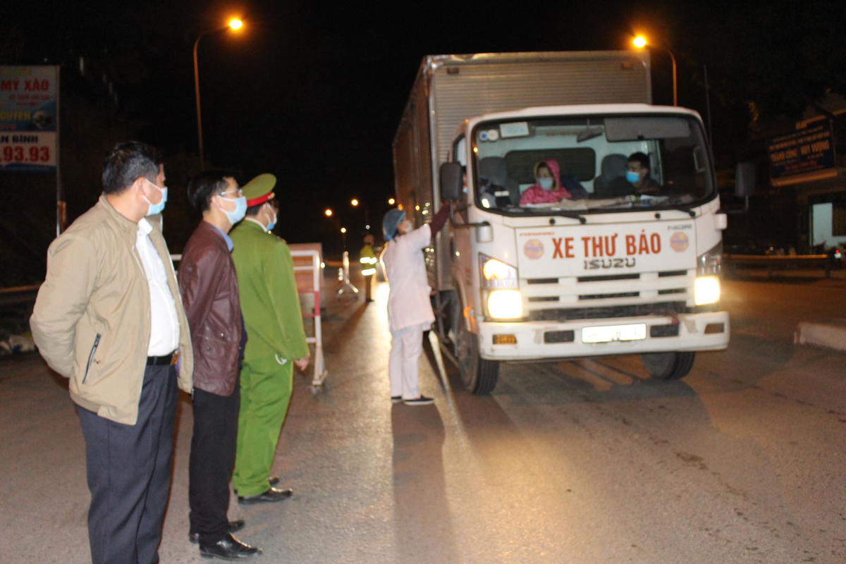 Lực lượng chức năng kiểm tra thân nhiệt của những người đi từ Bắc Giang vào tỉnh Thái Nguyên qua khu vực xã Hợp Tiến, huyện Đồng Hỷ. ( Ảnh Báo Thái Nguyên).