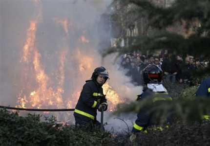 Lửa bùng phát bên ngoài sân Vicente Calderon trước khi trận Atletico-Lazio diễn ra. |