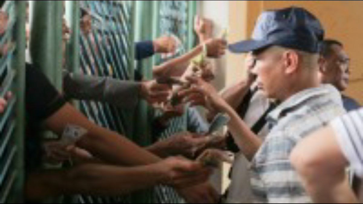 Mặc thời tiết nắng nóng, các cổ động viên vẫn xếp hàng dài, chen nhau đưa tiền qua khe cửa để mua vé trận đấu Nam Định gặp HAGL.