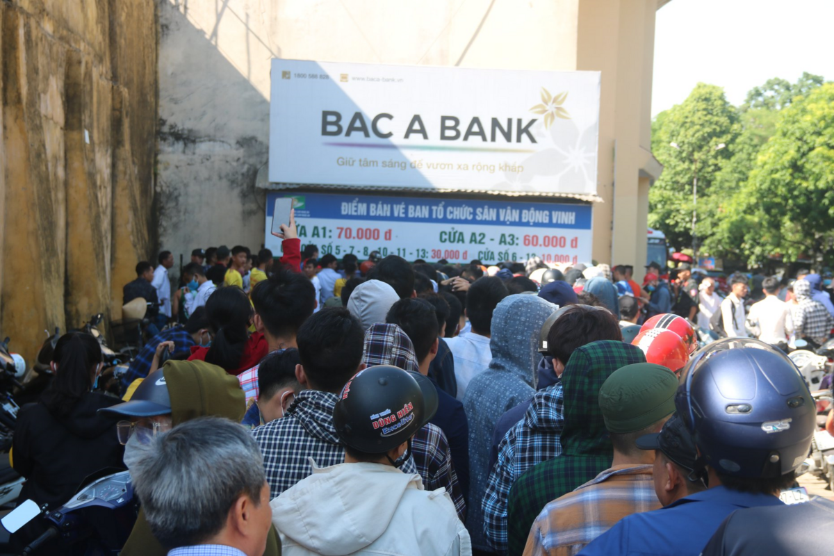 8h30 ngày 23/6, vé trận SLNA và TP.HCM được mở bán tại các quầy vé của sân Vinh. Hàng trăm người hâm mộ xứ Nghệ chen nhau mua vé giữa nắng nóng 40 độ C.