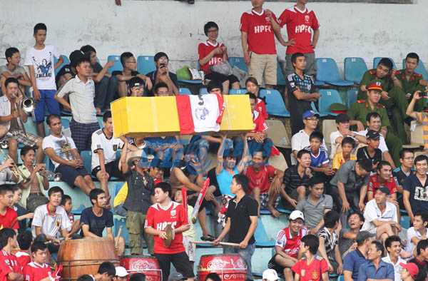 “V.Hải Phòng đã từ trần” - Người Hải Phòng muốn nói vậy chăng? Có thể, nhưng hành động phản cảm này chỉ kéo dài được khoảng chừng 2 phút thì bị lực lượng an ninh sân dẹp gọn.