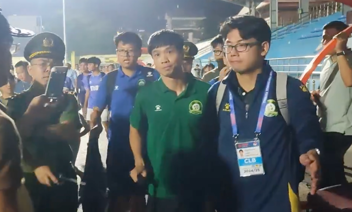 Người hâm mộ Hòa Bình vây kín Công Phượng.
