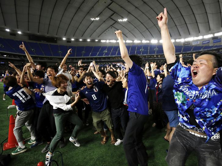 Các CĐV ở Tokyo ăn mừng bàn thắng.