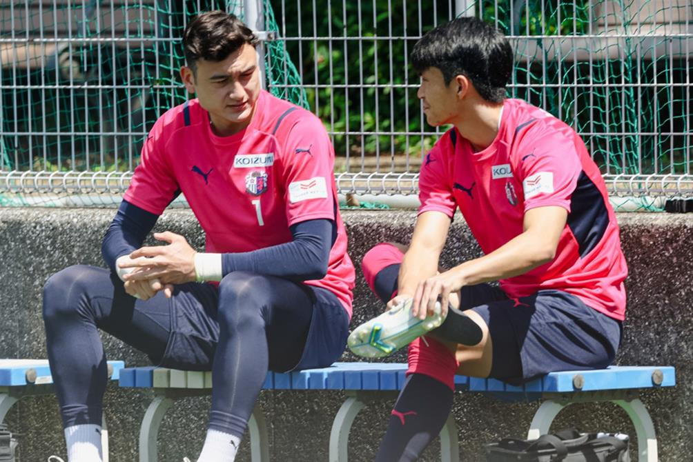 Đặng Văn Lâm trò chuyện với tân binh Chaowat Weerachat của Cerezo Osaka (Ảnh: J-League)