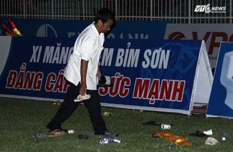 Cho rằng tổ trọng tài thiên vị đội khách, cổ động viên Thanh Hóa đã phản ứng dữ dội, ném chai lọ, giày dép, ống nhựa xuống sân khiến trận đấu phải tạm dừng gần chục phút. Chưa dừng lại ở đó, hết trận, cổ động viên ở khán đài A và khán đài B tụ tập không chịu ra về, đồng thời buông lời chửi bới, thậm chí dọa "xử" trọng tài Phan Đức Hùng và các đồng sự.