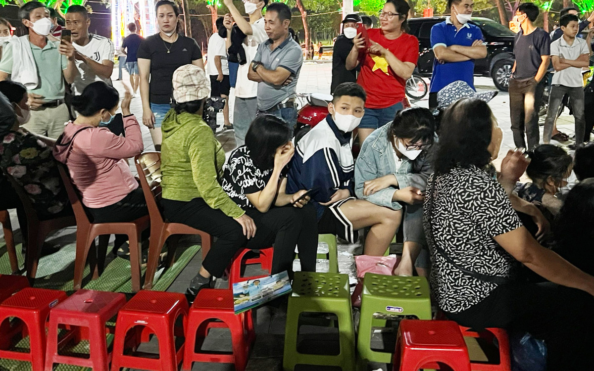 Nhiều người thậm chí mang cả chăn chiếu ra trước khu vực nhà thi đấu để lấy được vị trí tốt. (Ảnh: Thu Thảo)