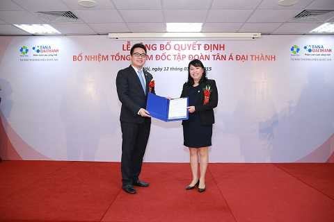 | Bà Nguyễn Thị Mai Phương – Chủ tịch HĐQT trao quyết định bổ nhiệm ông Nguyễn Duy Chính vào chức vụ Tổng giám đốc Tập đoàn Tân Á Đại Thành |