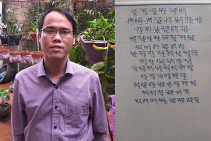 "Nhìn lướt qua, bộ chữ bảo mật thời 4.0 khá giống với chữ Hàn. Tuy nhiên đây không phải chữ Hàn. Tôi thiết kế ra 90% chữ cái mới hoàn toàn phù hợp với phát âm tiếng Việt. Còn 10% ứng dụng từ chữ Hàn”, ông Lâm nói.