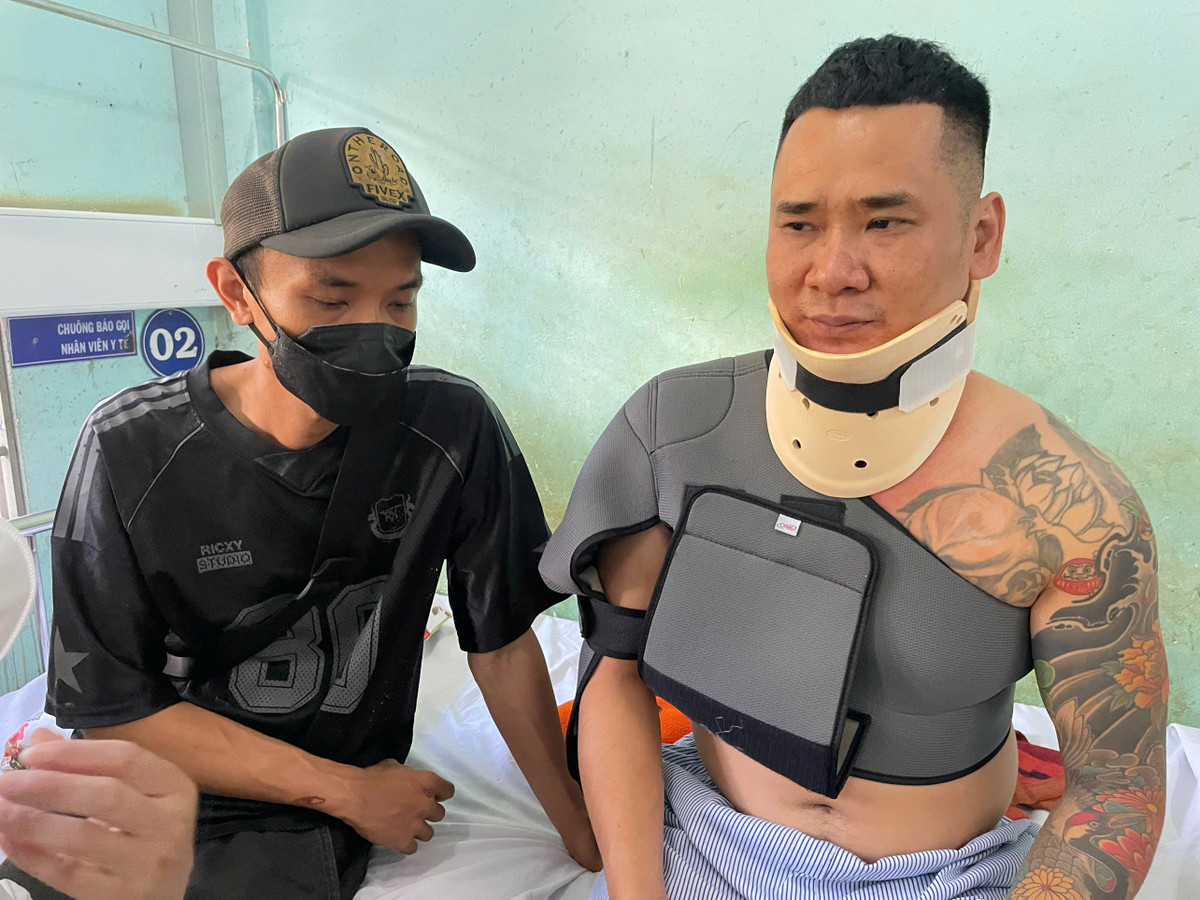 Sau gần một ngày được các bác sĩ chăm sóc và điều trị tại bệnh viện, anh Đặng Bảo Duy (SN 1985, ngụ tại số 6/15 Lý Nam Đế, phường Phù Đổng, TP Pleiku, tỉnh Gia Lai) đã dần hồi phục sức khỏe. Tuy nhiên, do bị chấn thương vùng cổ và phải nẹp cố định, việc trò chuyện của anh vẫn còn khó khăn.